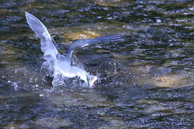 水辺で構えて、獲物が近づいたら捕食、オイカワは大好物です。
